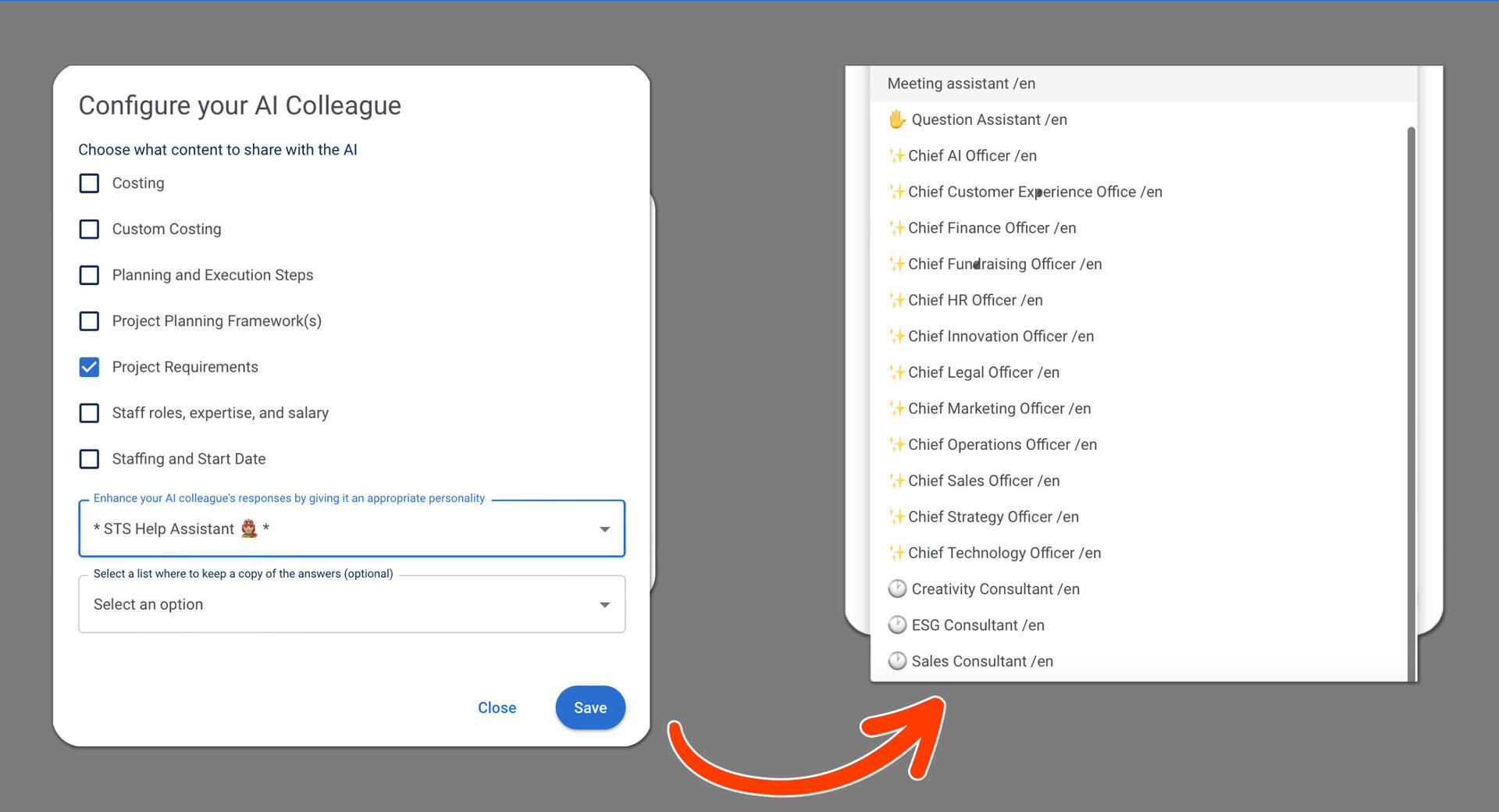 Notre copilote assistant-questionneur pose des questions ciblées pour guider vos réponses détaillées, garantissant des réponses d’IA précises et des informations de qualité à chaque étape.